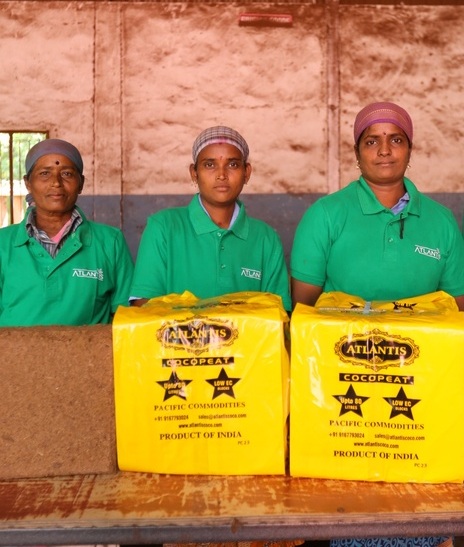 coconut husks are processed at our Coconut Fibre Mills to extract coir fibre, leaving behind the byproduct – a spongy material that binds the coconut fibre in the husk – the coco coir or the coco peat, the main raw material for the Coco Coir based Growing Medium